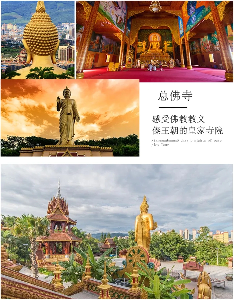 等级的佛寺,也是西双版纳最热门的佛寺景点。总佛寺是西双版纳佛教信徒拜佛的中心,建筑大气雄伟、梁柱雕刻精美,主