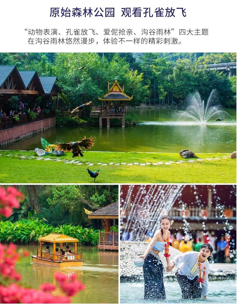 园内有沟谷雨林、孔雀飞舞、民俗歌舞、美食、泼水狂欢等项目,是西双版纳最大的综合性生态旅游景点之一。